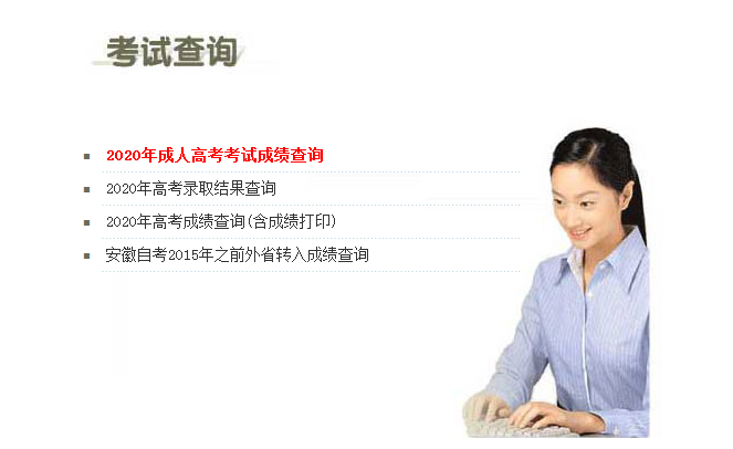 从安徽省教育考试院获悉,2020年安徽成人高考的网上阅卷工作已经结束,11月16日起,考生可登录安徽省教育招生考试院网站进行成绩查询,也可通过安徽省教育招生考试院微信公众号上的“信息查询”菜单,点击进入查询页面。具体步骤如下: