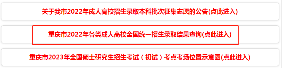 点击进入:2022年重庆成人高考录取结果查询入口(重庆市教育考试院)